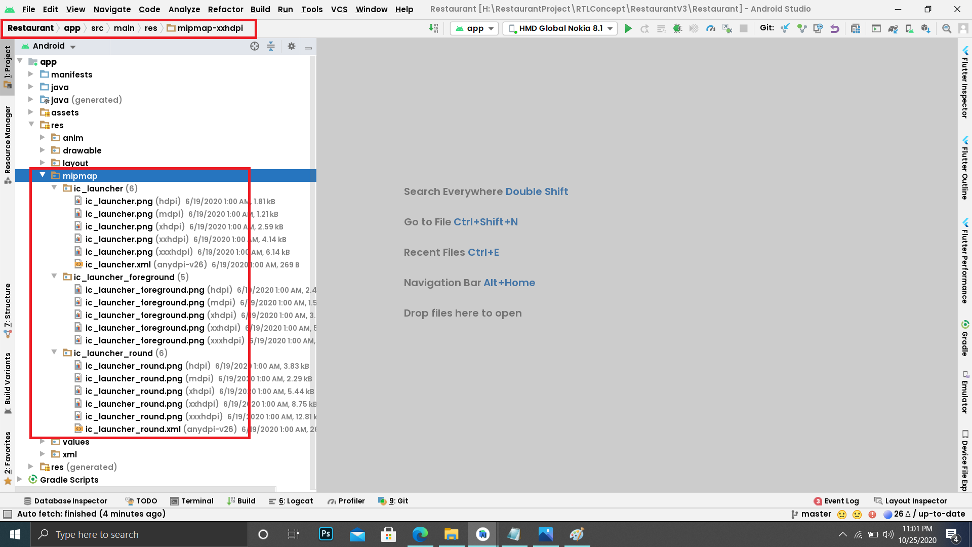 Now we need to put a png file with your icon named 'ic_launcher.png' in the following folders: